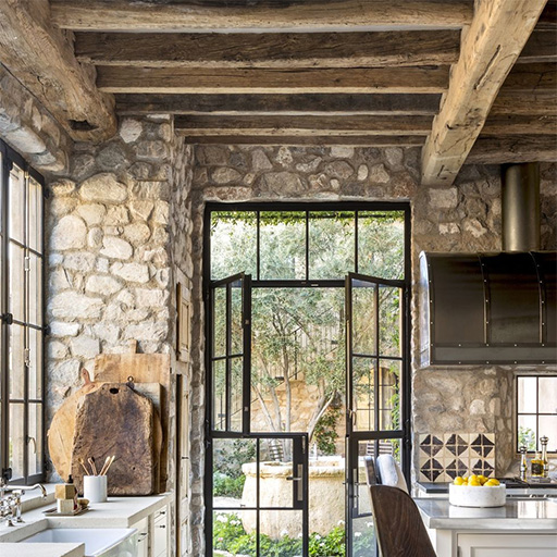 Natural stones impart ageless sophistication, strength, and a distinctive character to kitchen interior design. Each of the different types of stones possess their own characteristics and attributes, which make the stones a versatile entity for various aspects of designing the kitchen. It can be utilized as accent walls, fireplace surround, backsplash etc. It comes in various finishes such as polished, honed, and tumbled. Polished provides a shiny finish whereas the honed and tumbled finishes provide a soft, rustic finish. It can be combined along with materials such as wood or metal to bring about contrast and balance to your kitchen layout.
