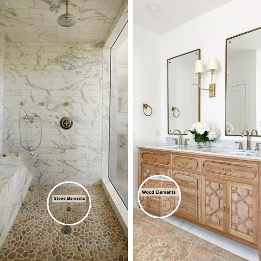 Wellness benefit: Research shows that exposure to natural materials and organic materials may lower stress level, enhance mood, and improve overall wellbeing. A bathroom that is designed with earthy tones, wood accents, and natural stone finishes is more than an aesthetic space, but an oasis where you can relax and let your every day routines feel revitalizing.